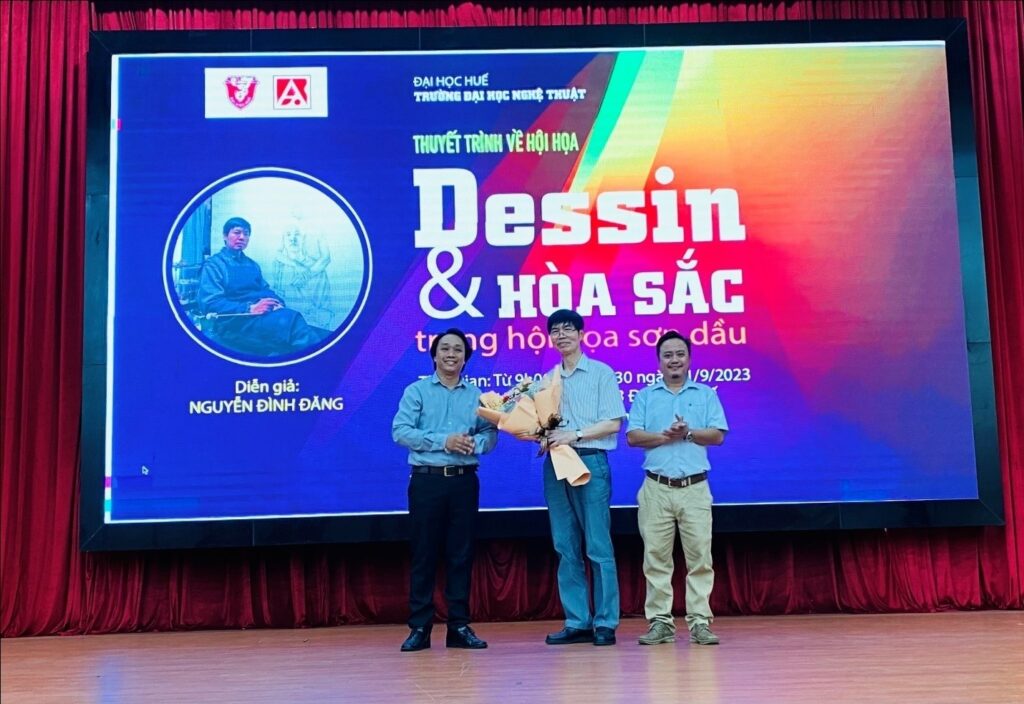 Sáng ngày 21.9.2023, trường Đại học Nghệ thuật, ĐH Huế đã tổ chức buổi thuyết trình về “Hội họa Dessin và Hòa sắc trong Hội họa sơn dầu” do Họa sỹ Nguyễn Đình Đăng trình bày cho toàn thể CB-GV, SV nhà trường và những người quan tâm đến nghệ thuật.