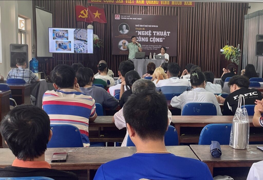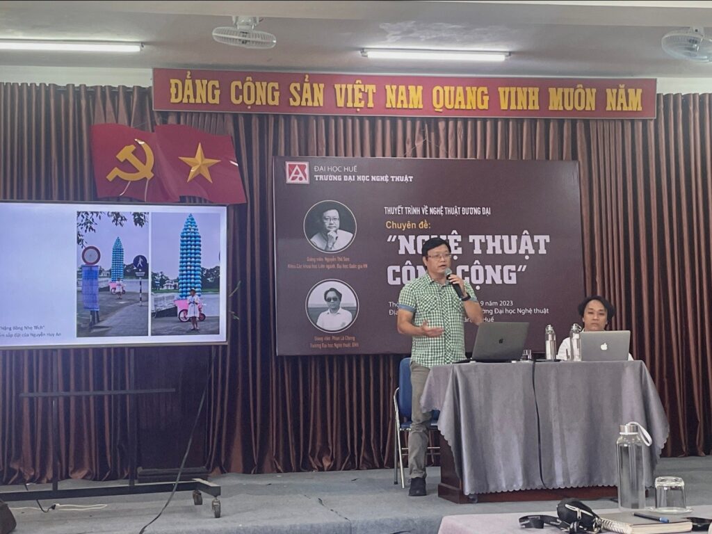 Chiều ngày 22/09/2023, trường ĐH Nghệ thuật, ĐH Huế tổ chức buổi thuyết trình về Nghệ thuật đương đại chuyên đề “Nghệ thuật công cộng” do Giảng viên Nguyễn Thế Sơn- Khoa Các khoa học Liên ngành, ĐH Quốc gia HN tại trường cho toàn thể CB-GV, SV của nhà trường.